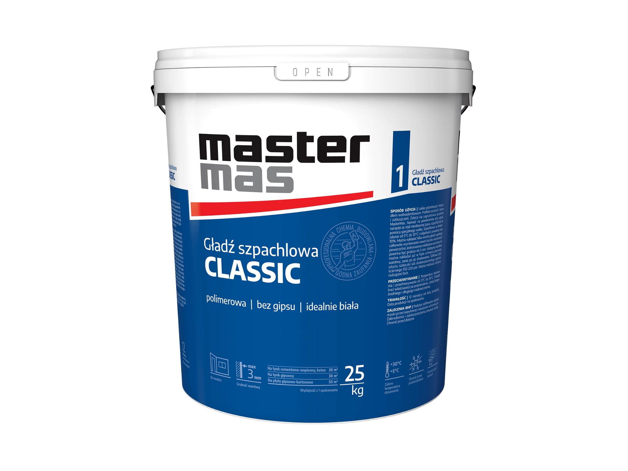 Gładź szpachlowa MASTER MAS to wysokiej jakości produkt na bazie gipsu naturalnego, przeznaczony do ręcznego wyrównywania powierzchni ścian i sufitów wewnątrz budynków. Charakteryzuje się bardzo dobrą przyczepnością do typowych podłoży mineralnych oraz łatwością obróbki.